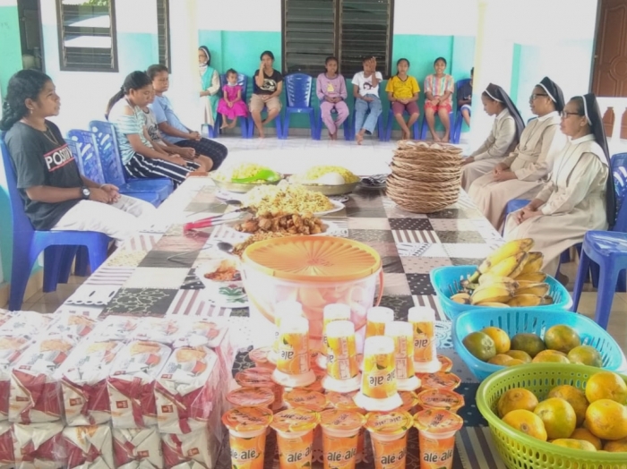 Anak-anak bergembira bersama dalam merayakan perayaan Natal. Nilai Kegembiraan, kreativitas dan semangat berbagi di tanamkan melalui kegiatan ini.